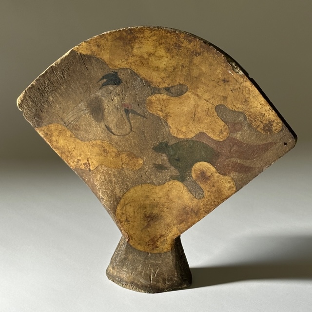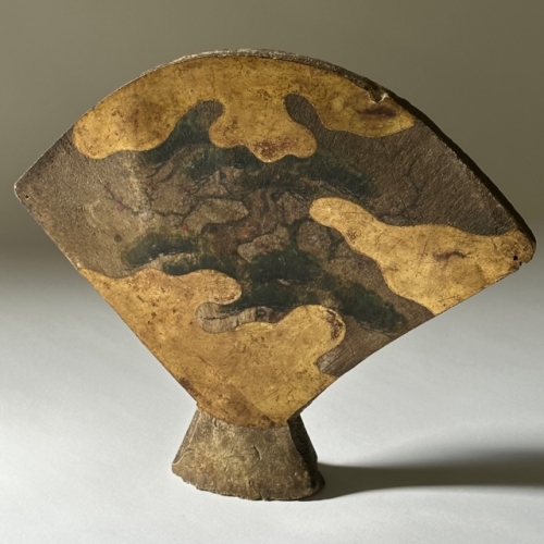 扇形の縁に小穴が開けられており、なにかを吊り下げていたようです。