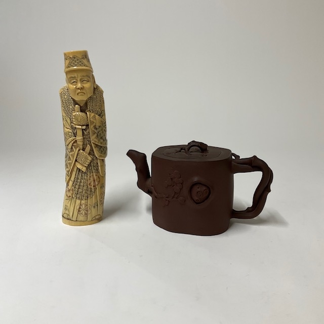 人物の彫刻置物と中国の古い急須を買取しました。